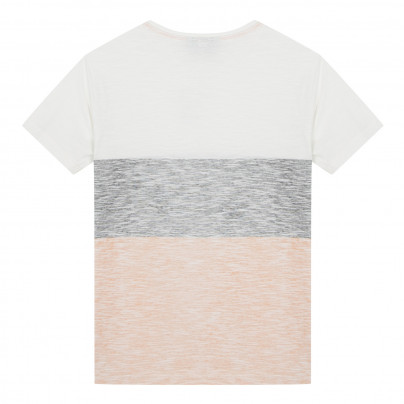 • Detalhes: T-shirt com três listras coloridas: pêssego no fundo, cinza no meio e branco no topo. Bolso no peito amarelo contrata com o colarinho de malha, com nervuras. BECKARO é costurado no bolso, bem como um rótulo de marca na parte inferior da t-shirt.