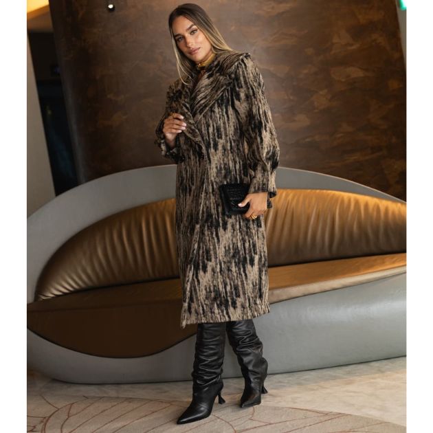 O Sobertudo Feminino é a peça perfeita para quem procura elegância, conforto e estilo numa só escolha. Com um design moderno e um padrão exclusivo, este casaco valoriza a silhueta e transforma qualquer look de inverno num visual sofisticado. Feito com tecido macio, quente e de alta qualidade, oferece máximo conforto nos dias frios. O corte alongado e a gola estruturada trazem um toque de luxo, combinando facilmente com vestidos, jeans ou botas de cano alto.