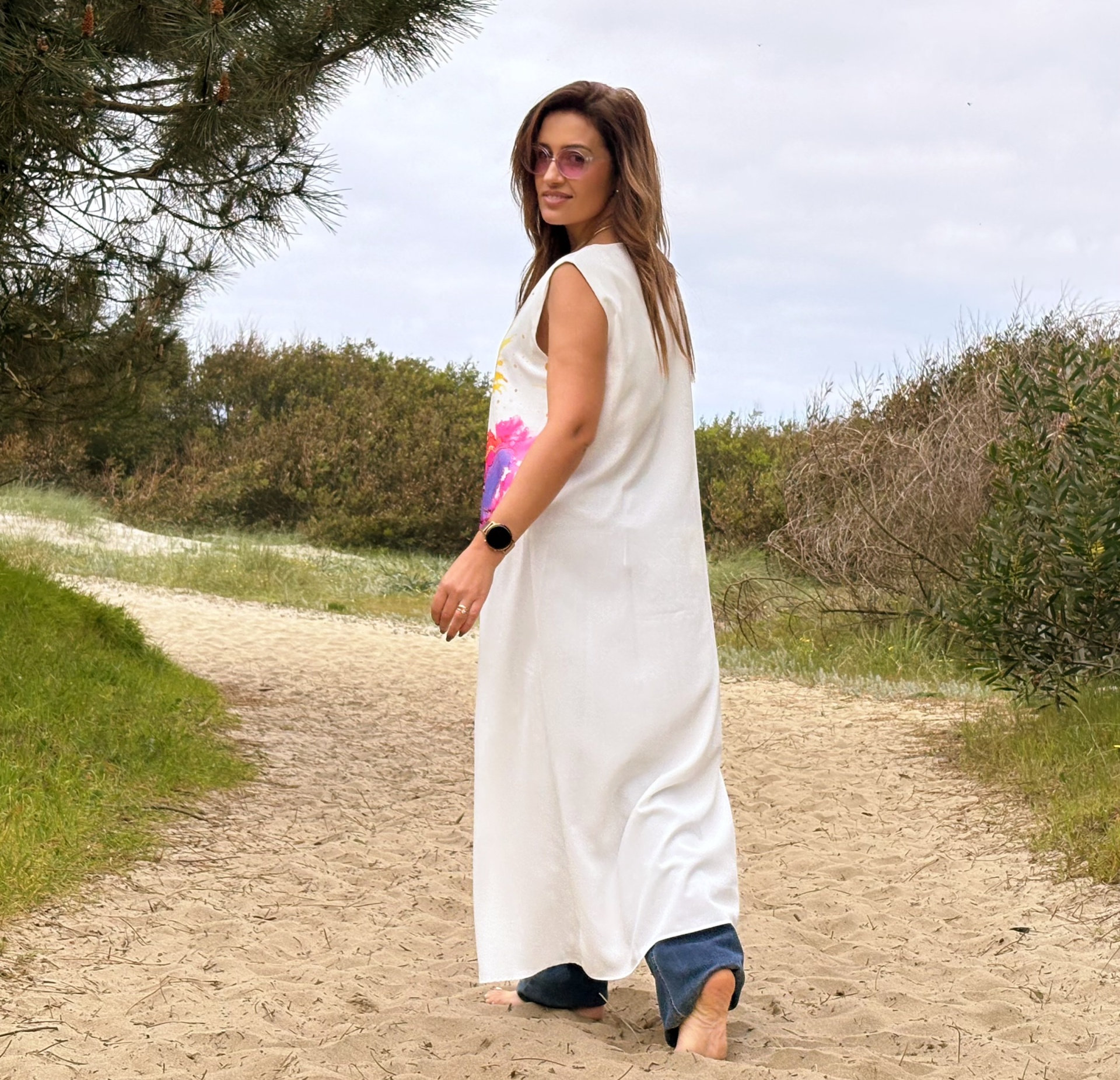 - Cor: Branco com estampado.