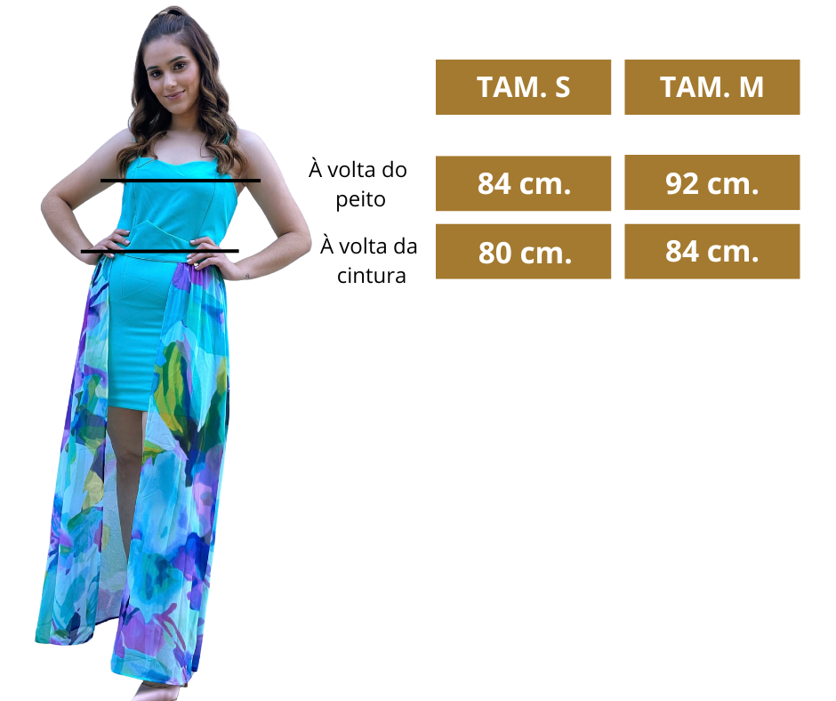 - Fecho: O vestido aperta atrás com zíper e a saia aperta de lado com zíper.
