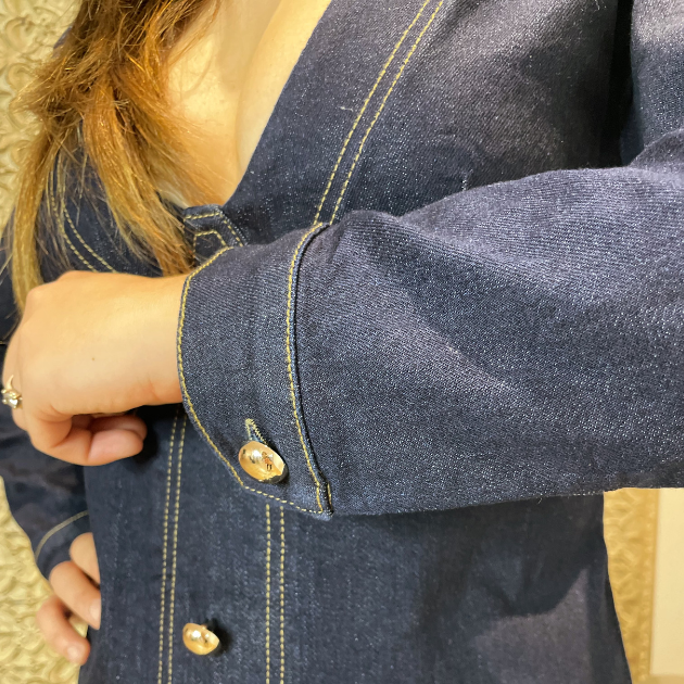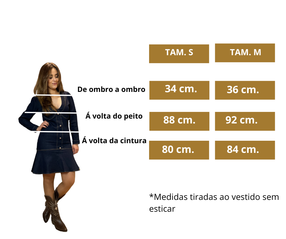 - Detalhes: Vestido de ganga curto com folho na base. Botões decorativos frontais.